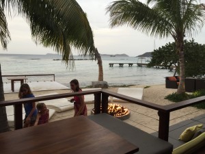 But we are sailors and sailors shouldn´t be afraid of water – as long it doesn´t enter the boat! So we decided to set sails towards Virgin Gorda. Nice sailing at 10 to 12 knots, close-hauled. Good position to do some sewing at the leech of the Genoa. The first night at sea we anchored in Little Trunk Bay. It was calm but somewhat wet: Rain was coming back! For dinner we drove with our dinghy to an atmospheric beach restaurant, Coco Maya. With delicious, however little things to eat. On Saturday we sailed again towards Beef Island with the hope to pick up Jan, our new crew member, from the airport. But he wasn´t on the plane and, as we know now, would never come to join the Seaside Team.