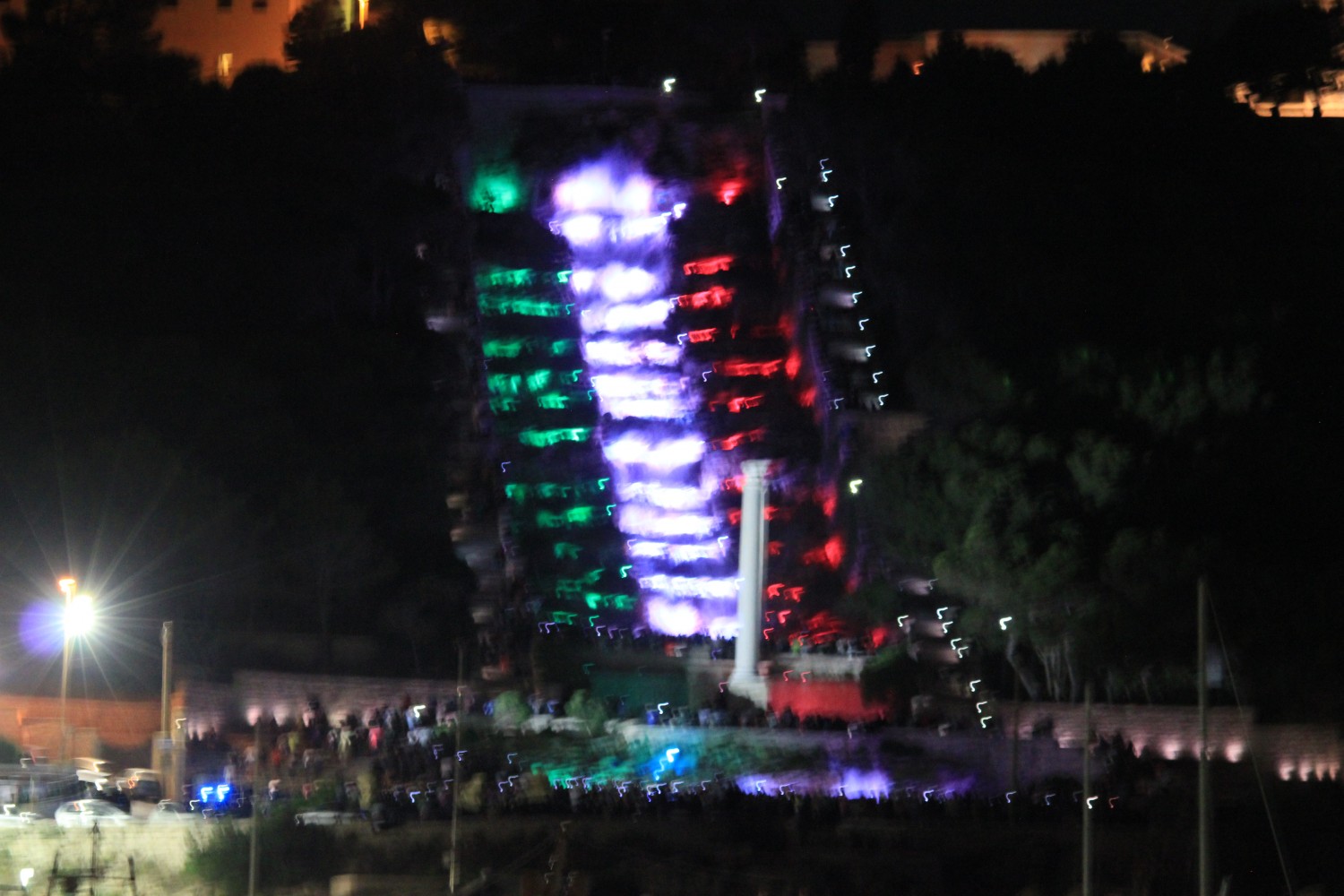 Leuca bot uns ein klassisches Konzert und spektakulären Iluminationen. Kaum zu glauben, daß sich hier eine antike Treppenanlage in einen reißenden Wasserfall verwandelte und schließlich in den italienischen Nationalfarben leuchtete.